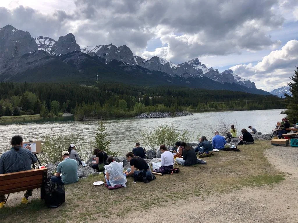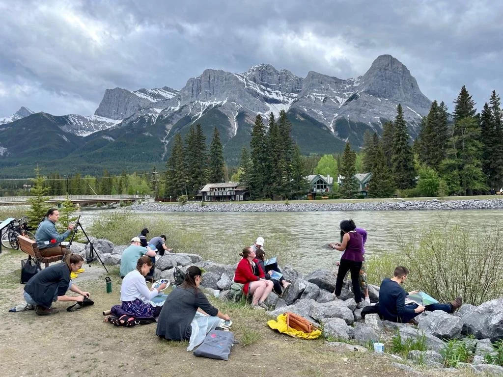 The Virtual Water Gallery partnered with the Canadian Water Resources Association (CWRA) to offer an array of art-science events and activities at the CWRA 2022 National Conference in Canmore. These events consisted of an exhibition viewing with CWRA participants on June 5th, a plein air painting event led by Virtual Water Gallery artists, a ‘Draw Me A River!’ watercolour Family Sunday workshop led by Louise Arnal, and a ‘Pour Me A River!’ Teen Art workshop led by Megan Leung at artsPlace. The Virtual Water Gallery artists attended the CWRA conference free of charge to permit unique art-science exchanges, and creatively illustrated the science presentations from the conference using their artistic perspectives. More information about these events in this CWRA Water News article (pages 22/23).